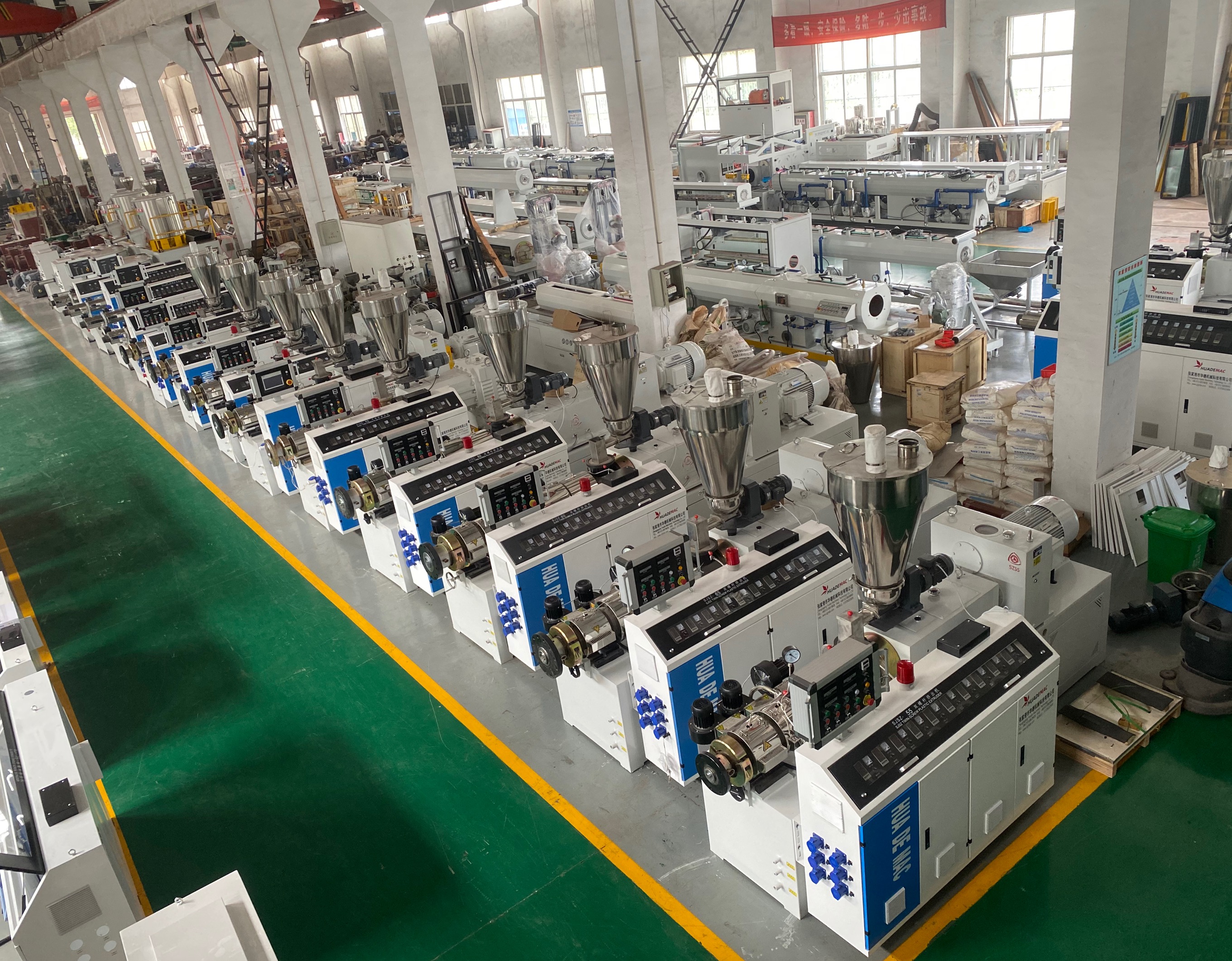專業(yè)制造:系列單雙螺桿擠出機、PPR管材生產(chǎn)線、PVC給水/排水管材生產(chǎn)線、HDPE管材生產(chǎn)線、MPP/CPVC電力管生產(chǎn)線、PVC各類異型材等成套擠出生產(chǎn)線及干燥機、上料機、破碎機、擴口機、高速混合機、牽引機、磨粉機等系列塑料機械。